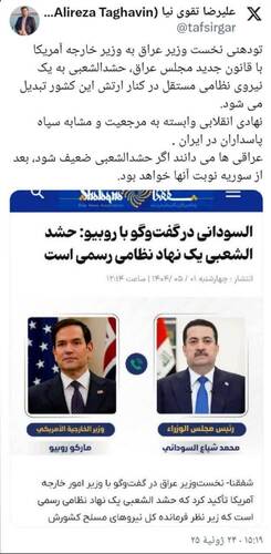 در مذاکرات اخیر میان نخست‌وزیر عراق و وزیر خارجه آمریکا، بغداد صراحتاً اعلام کرد که حشدالشعبی اکنون یک نهاد نظامی رسمی و تابع فرمانده کل قواست. این تحول، به روشنی نشان می‌دهد که دولت عراق تلاش دارد همزمان با حفظ استقلال تصمیم‌گیری، نفوذ آمریکا بر ساختار امنیتی خود را کاهش داده و ابتکار عمل بیشتری در مدیریت نیروهای داخلی کسب کند.