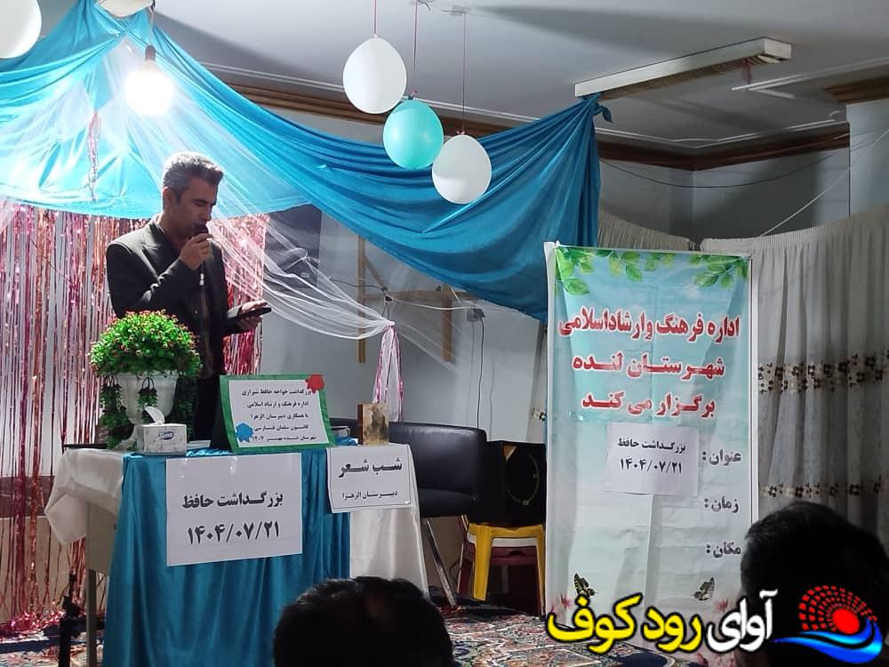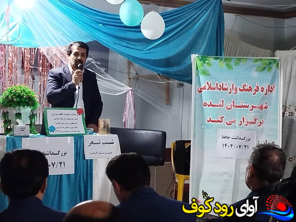 آوای رودکوف :به همت اداره فرهنگ و ارشاد اسلامی شهرستان لنده، آیین باشکوه گرامیداشت حافظ شیرازی، شاعر بزرگ و عارف نامدار ایران زمین، با اجرای برنامههای متنوع و فرهنگی برگزار شد.