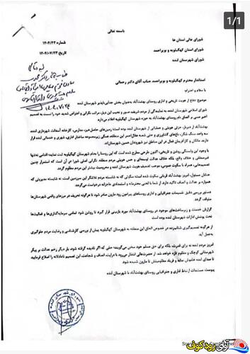 در پی این نامه، استاندار کهگیلویه و بویراحمد دکتر یدالله رحمانی پس از مطالعه دقیق مستندات، در حاشیه مکاتبه با دست‌خط رسمی خود خطاب به “معاون سیاسی، امنیتی و اجتماعی استانداری” پاراف کرده و دستور بررسی و اقدام لازم را صادر نمود.