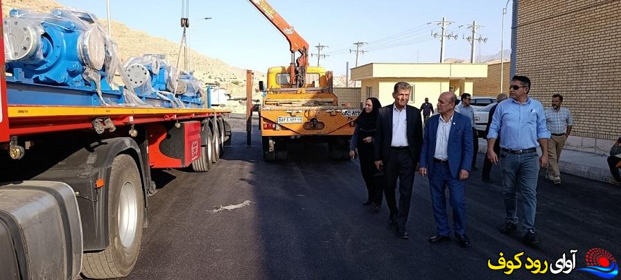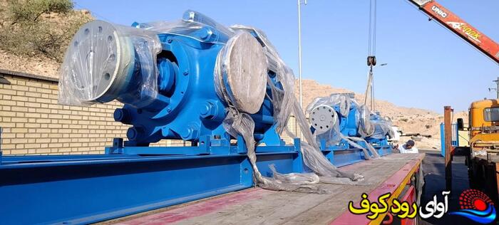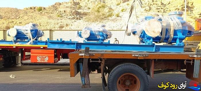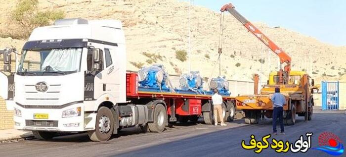 تجهیزات پمپ های آب سد کوثر به بهمئی ، برای نصب و راه اندازی در محل ایستگاه این طرح تامین و تخلیه شد.